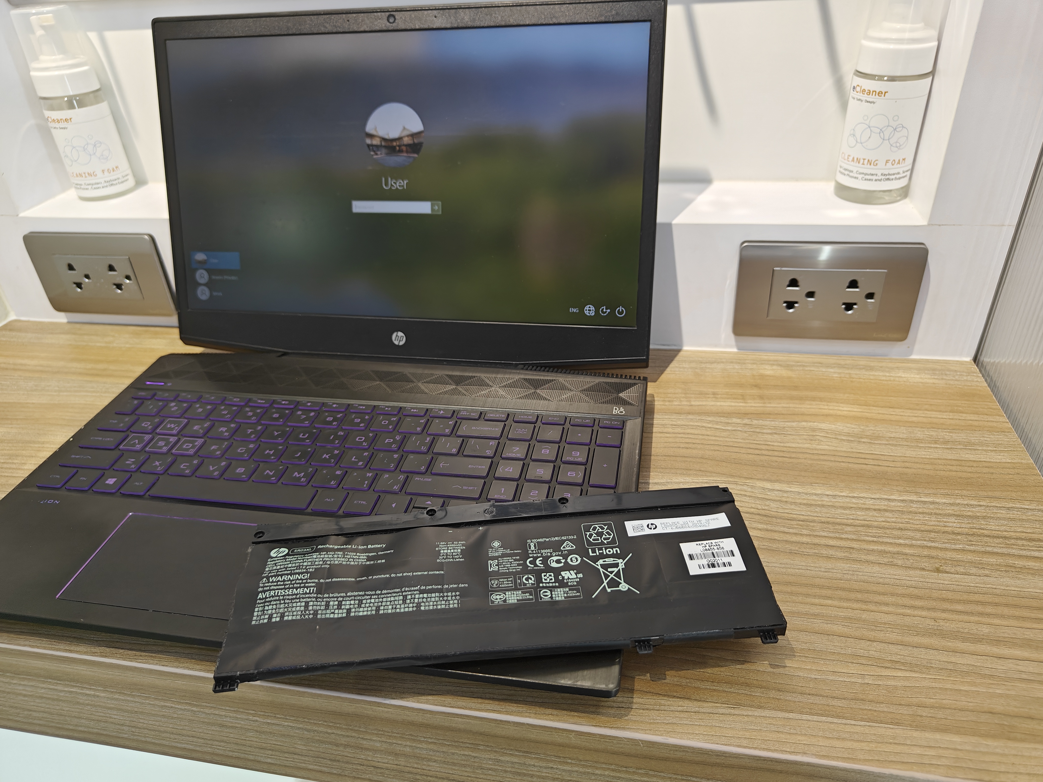 โดยเฉพาะในรุ่น HP Pavilion Gaming 15-cx ซึ่งบอดี้ล่างบางและแน่น ทำให้เมื่อแบตเริ่มเสื่อม บวมขึ้นด้านใน ก็จะดันโครงสร้างเครื่องให้หลุดออกจากกัน