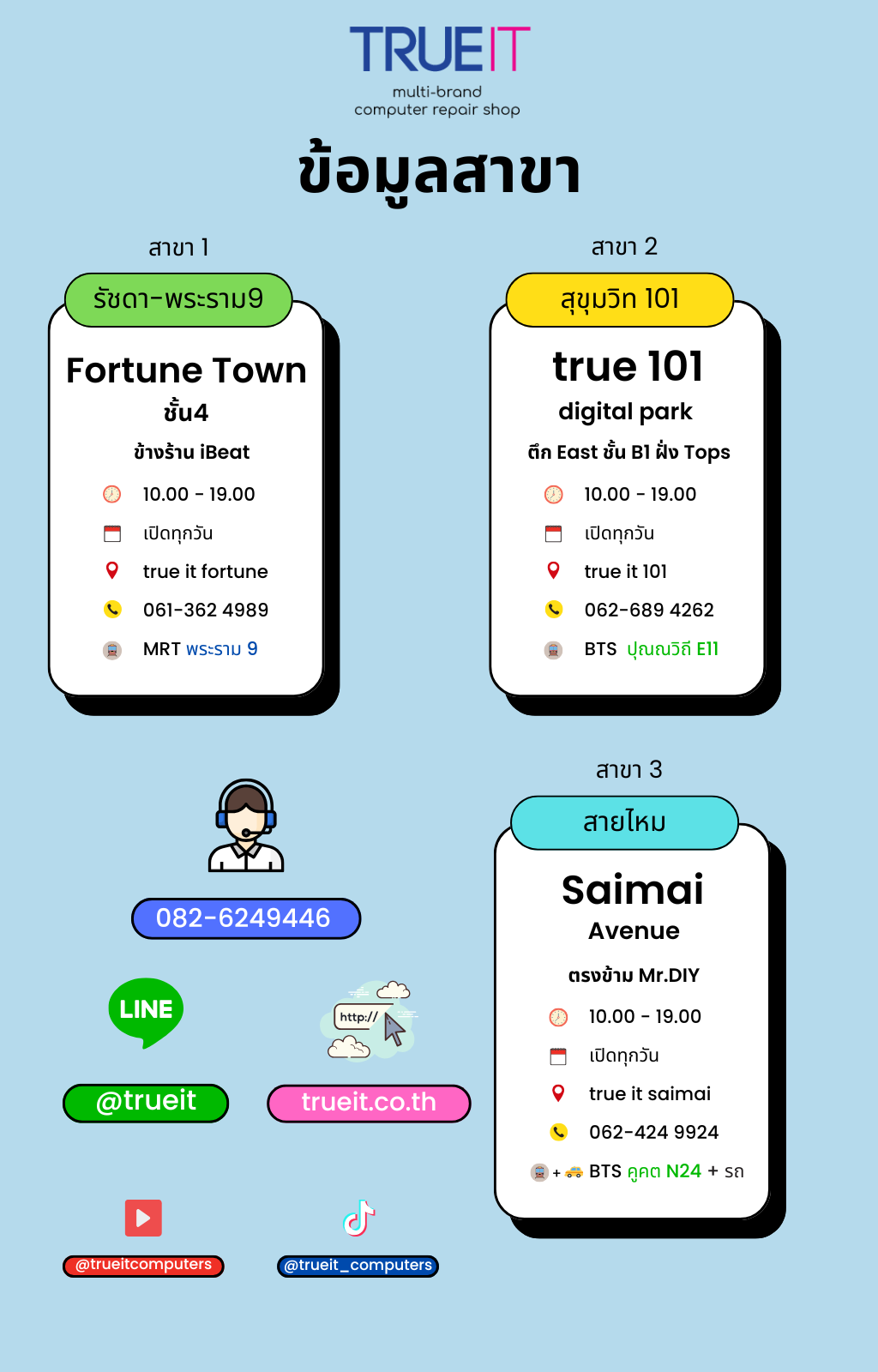 ร้านทรูไอที มี 3 สาขา